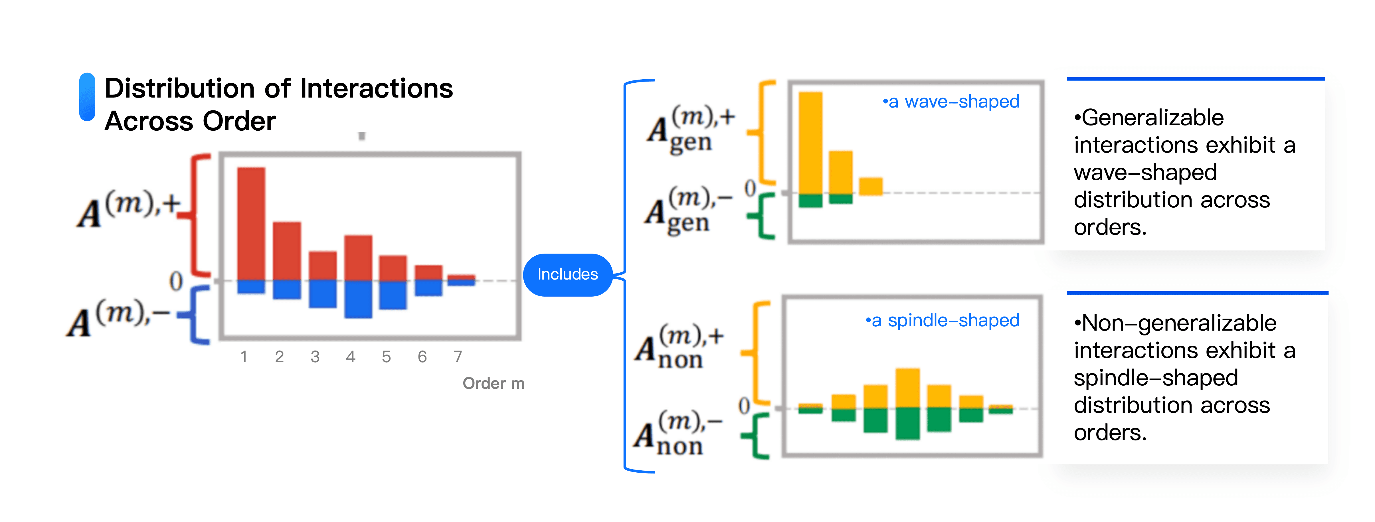 Crucially, we unveiled the unique distribution patterns of these two types of interactions. Generalizable interactions tend to concentrate at lower levels, and their interaction strength decreases as complexity increases. Non-generalizable interactions exhibit two prominent features: numerically, their effects often cancel each other out; in terms of complexity distribution, they form a spindle shape—medium complexity interactions are most numerous, while both overly simple and extremely complex non-generalizable interactions are rare. These findings enable us to quantify the distribution of generalizable and non-generalizable interactions on the representational level, directly measuring a network's degree of overfitting. This provides a novel analytical perspective and quantitative foundation for neural network optimization and enhancement.